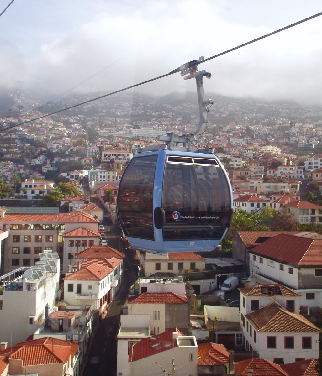 TELEFÉRICOS DA MADEIRA: Die Seilbahn zwischen Funchal und Monte aufgenommen am 22. April nahe an der Talstation, im historischen Stadtteil Santa Anna in Funchal, Madeira.