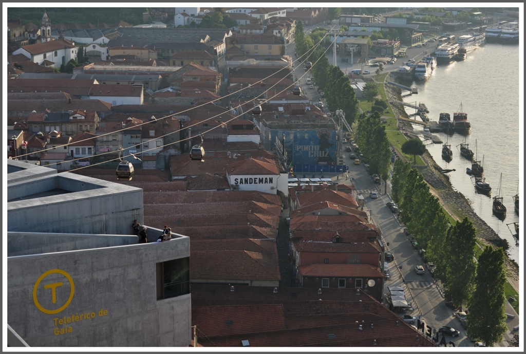 Ein Gondel der Teleférico de Gaia kurz vor der Ankunft an der Endstation am Park Jardim do Morro. (Porto, Januar 2017)