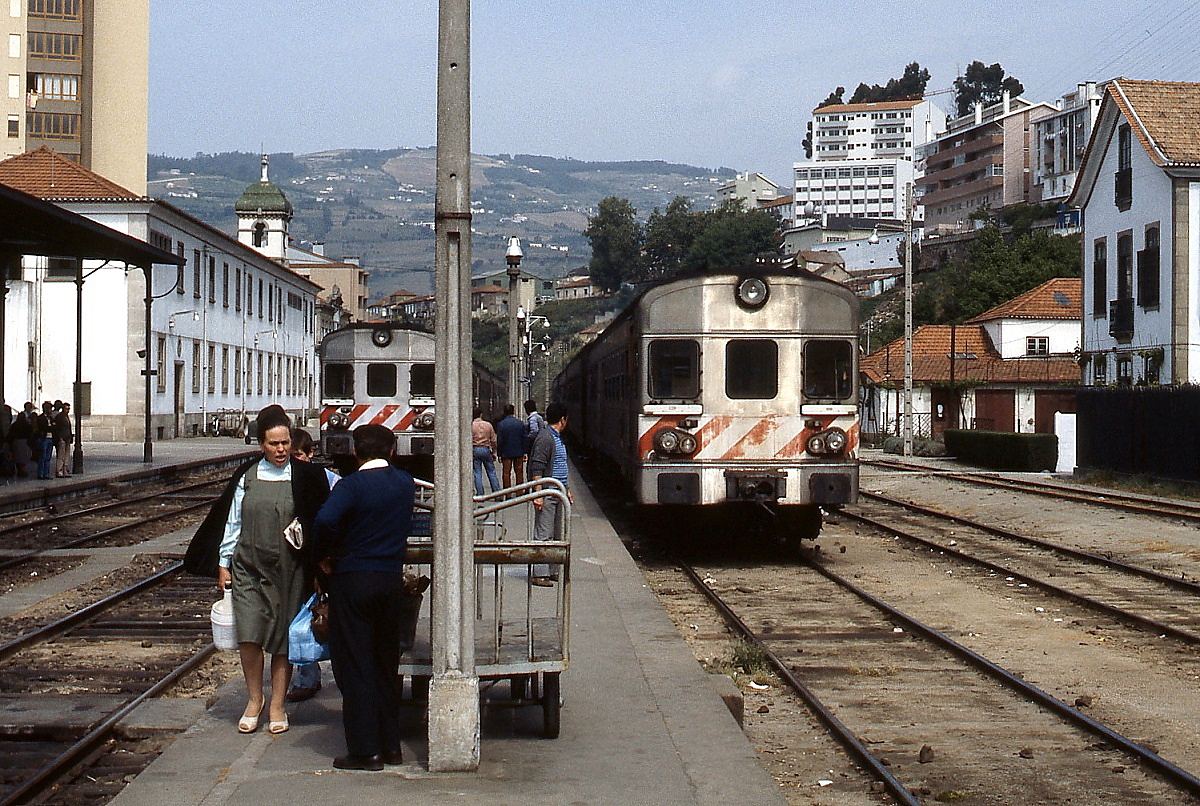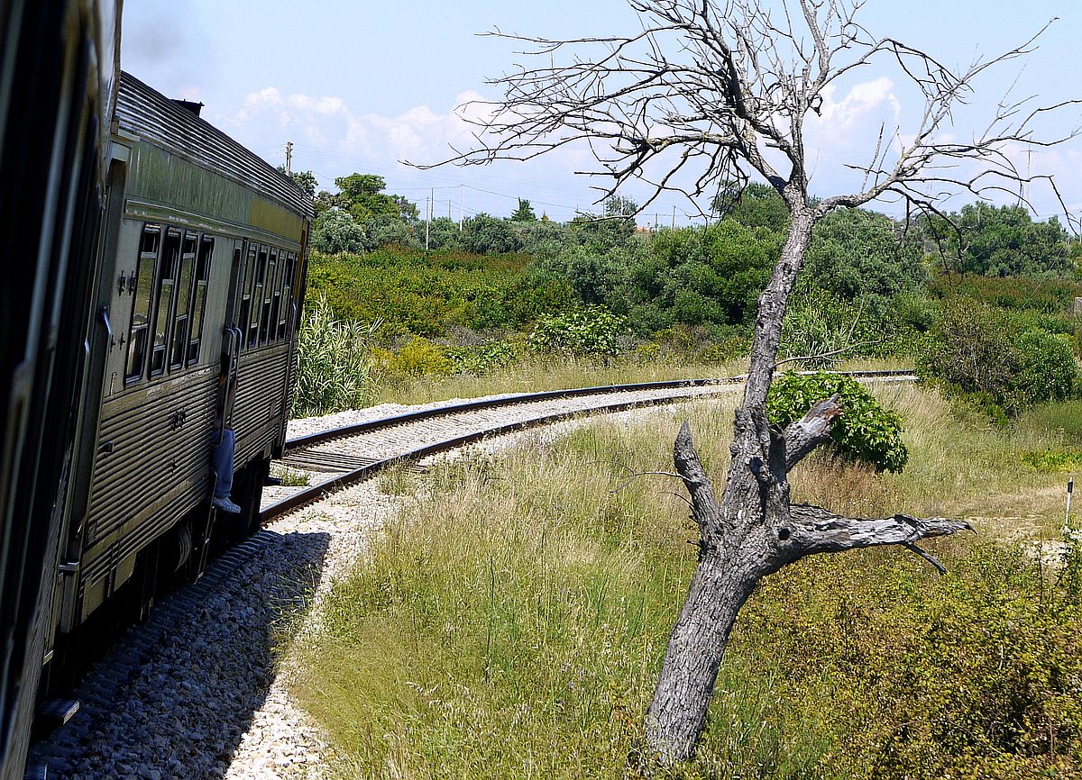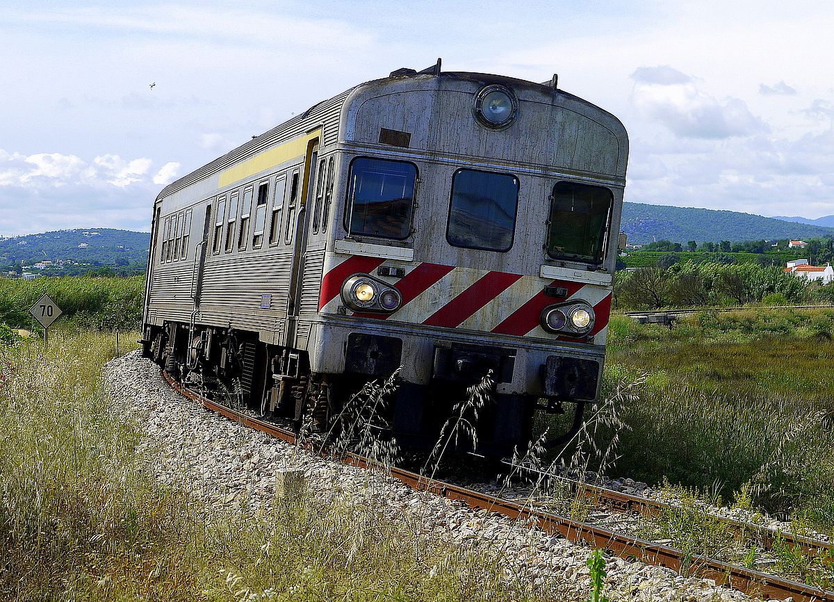 ALCANTARILHA (Distrikt Faro), 02.02.2005, ein Triebzug BR 0600 aus Richtung Faro bei der Einfahrt in den Bahnhof Alcantarilha