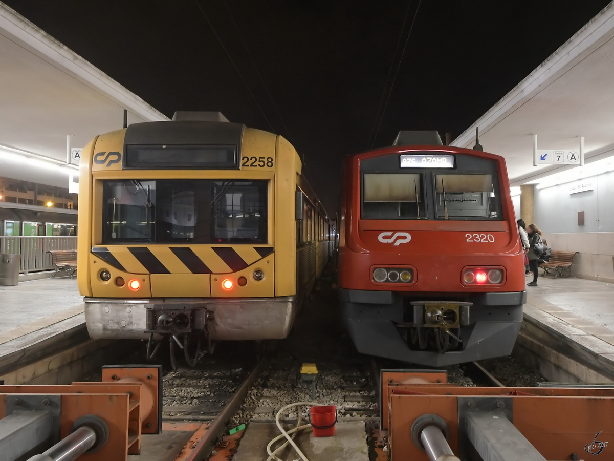 LISBOA (Distrikt Lisboa), 29.09.1999, ein Triebzug BR 2300 als Vorortzug im Bahnhof Rossio -- Foto eingescannt