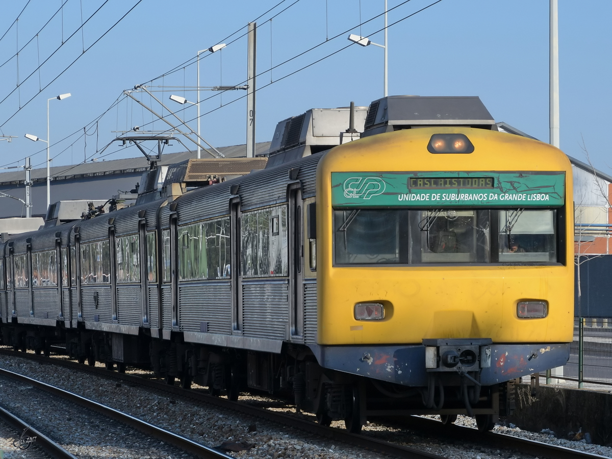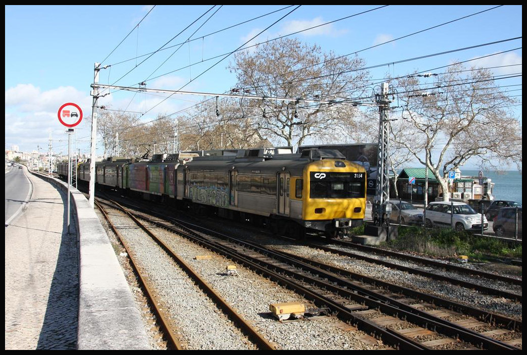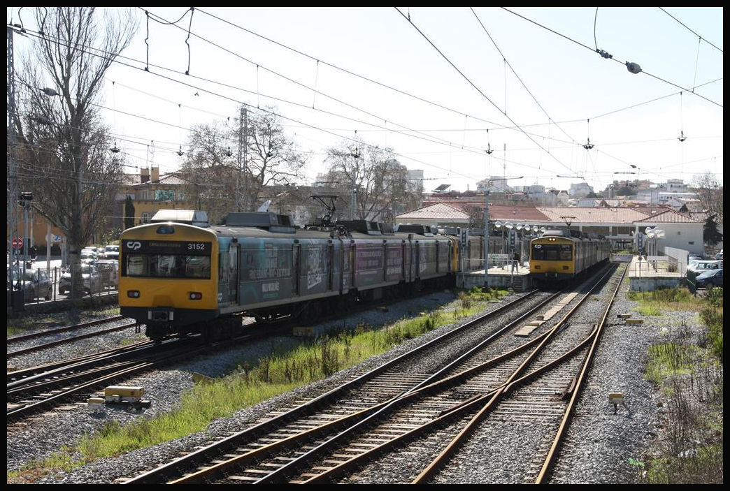 BR 3150 wartet im Bahnhof Lissabon "Cais do Sodre" auf die Fahrt nach Cascais. (Aufgenommen im März 2008)