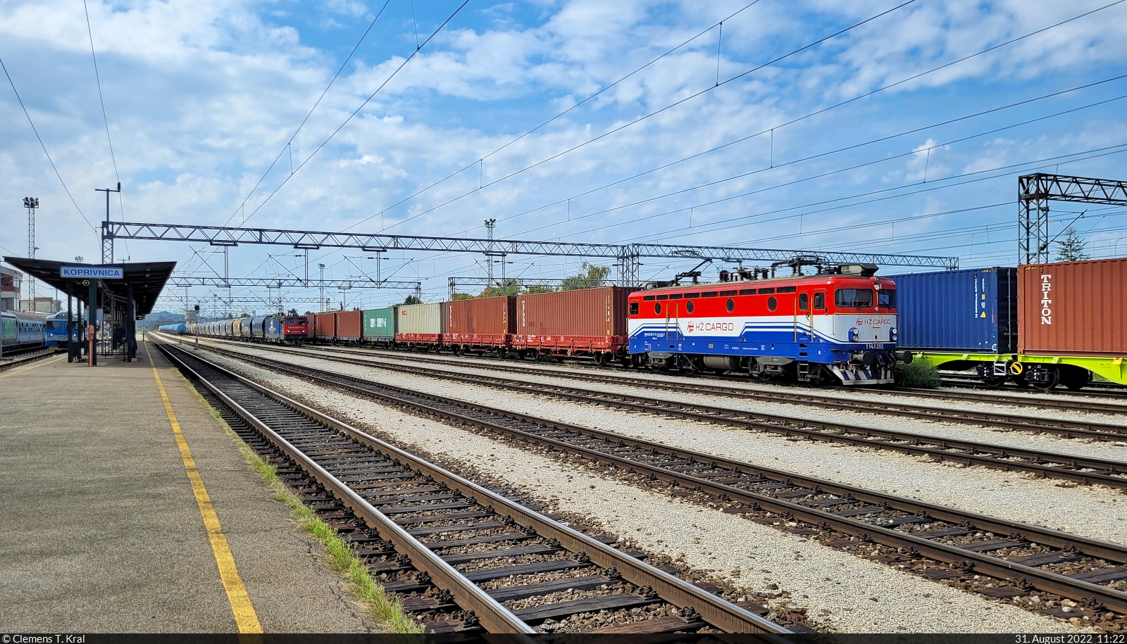 Zwangsstopp während der Fahrt nach Zagreb im Bahnhof Koprivnica (HR). Weil der Schienenersatzverkehr auf sich warten ließ, vertrieb ich mir die Zeit noch am Bahnsteig und konnte dabei 400 884-9 (91 53 0400 884-9 RO-GFR) mit Getreide am Haken aufnehmen. Die Lok trägt den Beinamen "Učka", ein Gebirgszug auf der kroatischen Halbinsel Istrien.