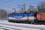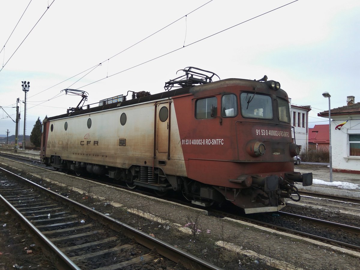 E-Lok 91-53-0-400002-8 wartet am 07.02.2017 in Bahnhof Deda. Dies könnte die zweit-gebaute Lok diese Baureihe sein.