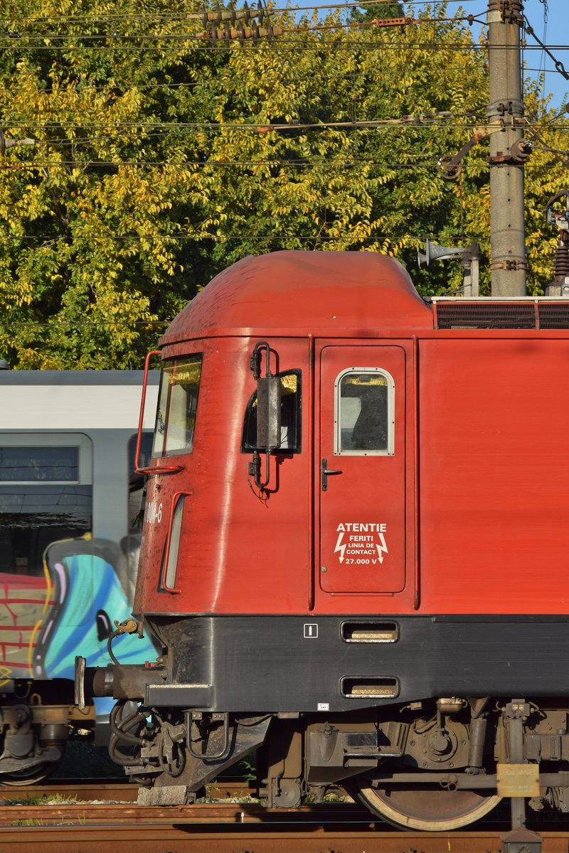 Die E-Lok 91-63-0-410431-7 trägt mit Stolz dass Wappen des Kreises Suceava, wo sie auchh beheimatet ist. Aufnahme im Nordbahnhof Bukarest am 13.10.2018.