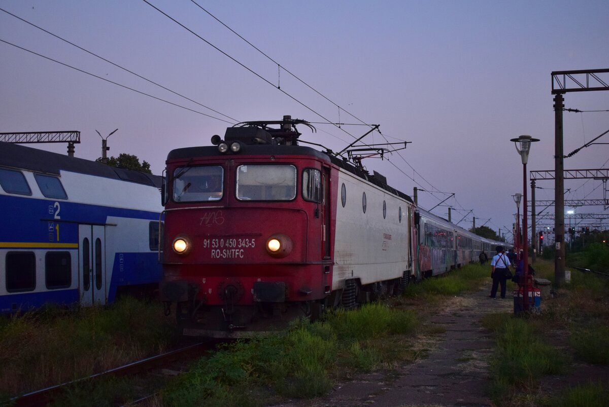 450 364-1 (91 53 0 450 364-1 RO-SNTFC) stellt den Nachtzug nach Chişinău (MD) im Bahnhof București Nord (RO) auf Gleis 8 bereit.