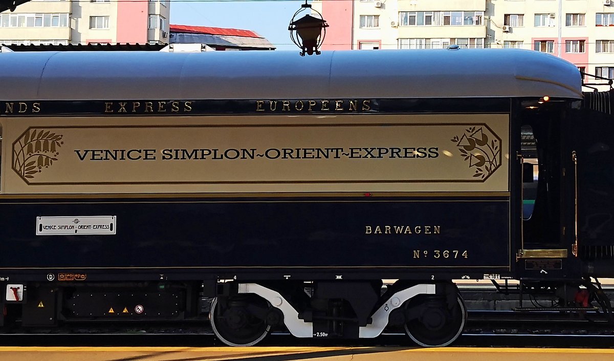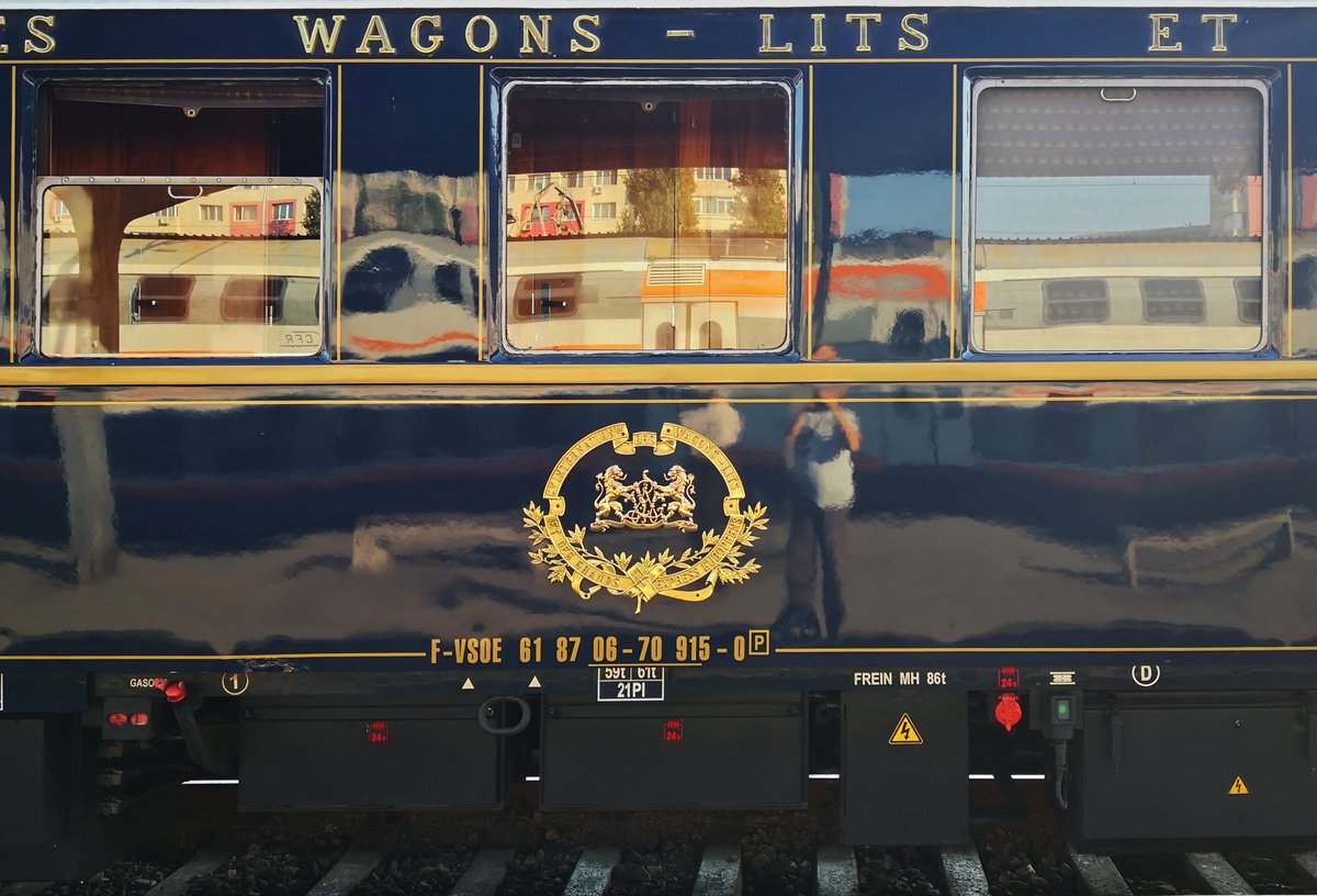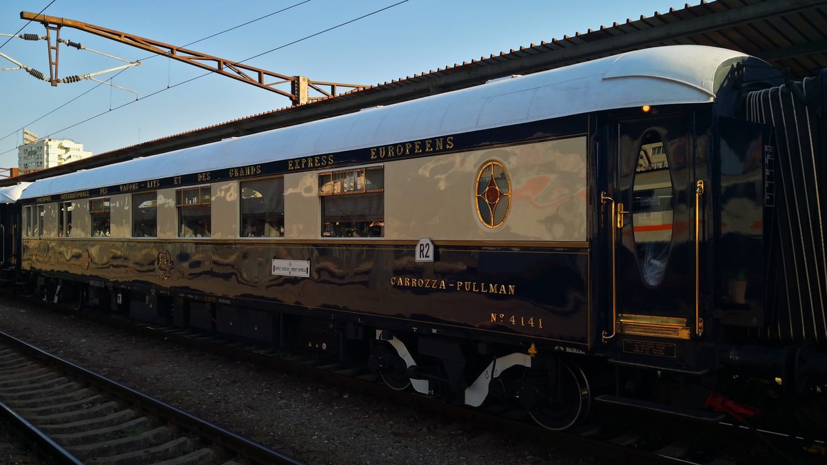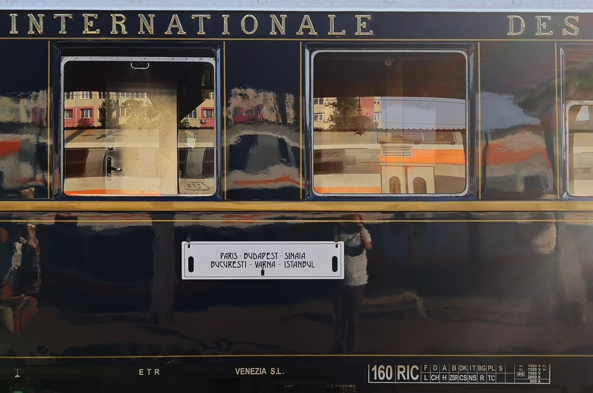 Am Morgen des 27.08.2019 wartete an Gleis 10 des bukarester Nordbahnhofs die 17-Wagen-lange Garnitur des Orient Exress. Der Aufenthalt auf dem Bahnsteig neben dem Zug war verboten, also sind alle Aufnahmen von den gegenüberiegenden Bahnsteigen gemacht. Das Bild zeigt die vordere Haefte des Zugs. In der Ferne kann man die zwei Dieselloks der Baureihe 64 erkennen, die den Zug in Richtung Giurgiu/Ruse befoerdern werden.