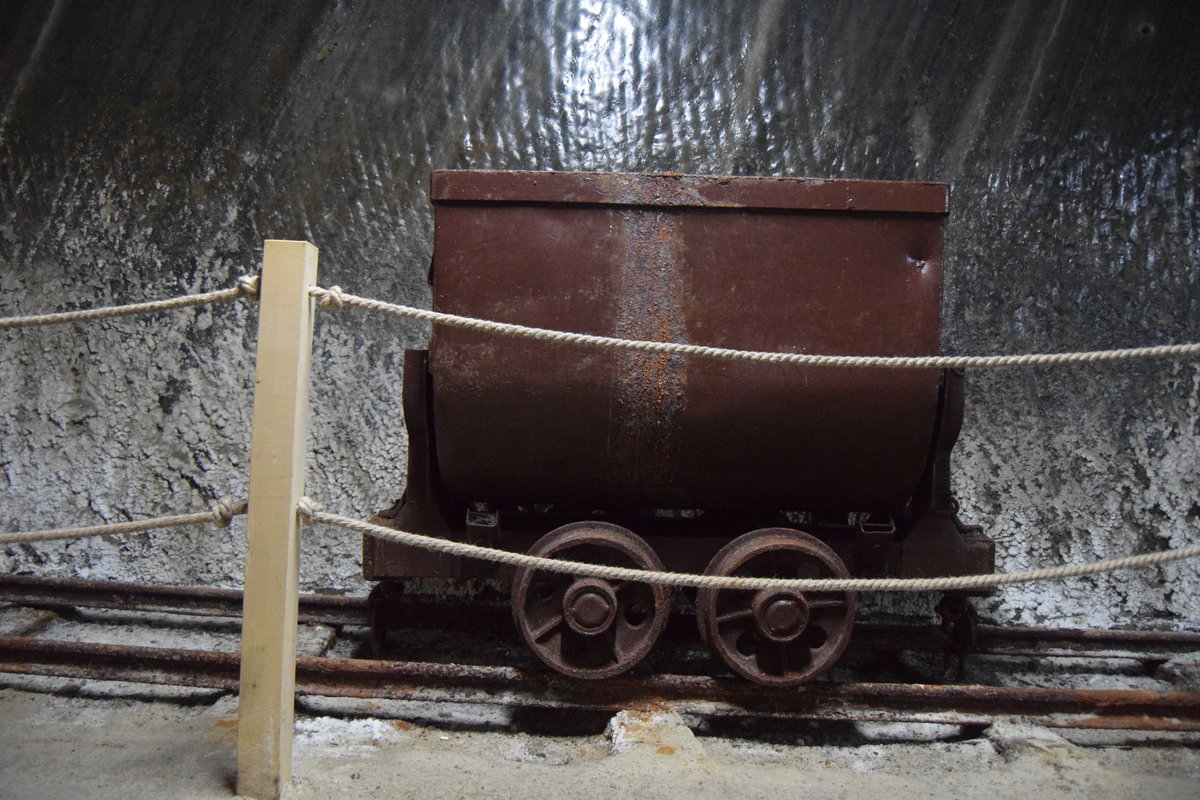 Die Salzmine Turda (Salina Turda) gibt es schon seit der Zeit der Römer. Bei Turda gab es sogar eine römische Garnison (Castrum Potaissa), der zur Verteidinung dieser Mine und der nicht weit gelegenen Stadt napoca (heute Cluj Napoca) diente. Mit der Zeit kamen ein ausgedehntes Bahnnetz und Wagen zur Beförderung ins Spiel. Die Wagen waren zu Erst aus Holz, und später aus Eisen, wie der im Bild dargestellte. Aufnahme vom 07.07.2018.