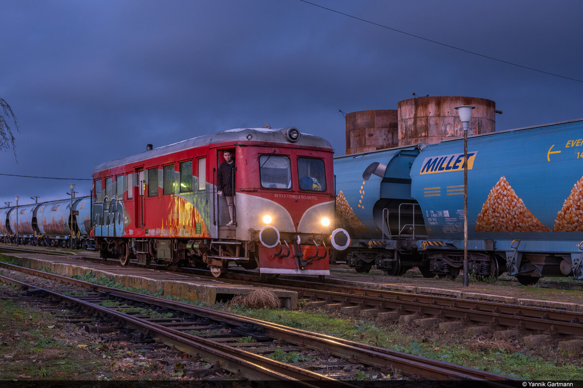 77 0917 verlässt am 31.05.17 den Bahnhof Corabia nach Caracal.
