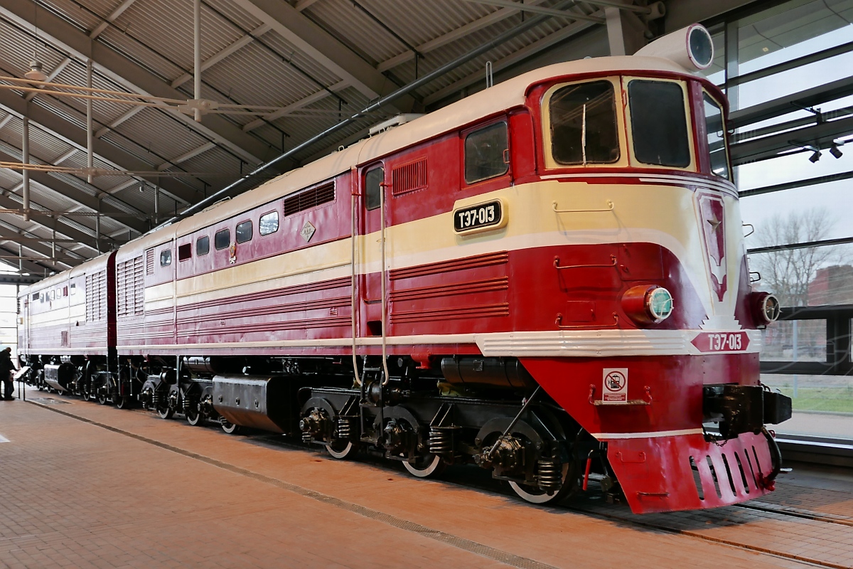 Passagier-Diesellok ТЭ7-013, Baujahr 1960, im Russischen Eisenbahnmuseum in St. Petersburg, 4.11.2017