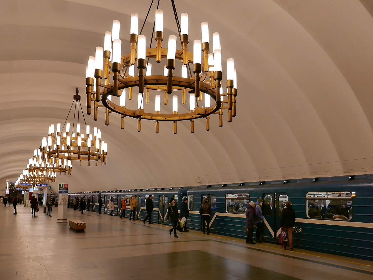 Pushkin-Statue in der Metro-Station Tschornaja Retschka der Linie 2 in St. Petersburg, 17.2.18