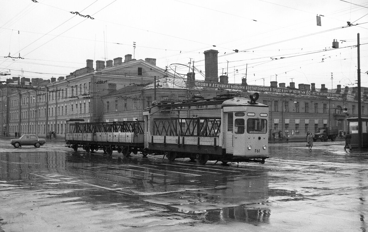 Leningrad Tram__Güter-Tw G-67 in einer Betriebs-Ausfahrt.__10-1977
