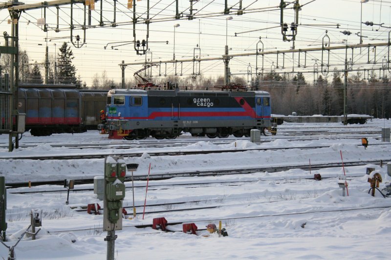 Rangierarbeiten mit GC Rc2 1106 am 27.12.2008 auf dem Güterbahnhof in Ånge.