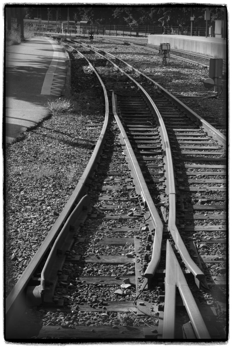 Bahnhof Gällivare, Gleis 1, Mitte Bahnsteig: eine Weiche mit beweglichem Herzstück! Das Foto wurde vom Bahnsteig aus aufgenommen. Gällivare, 11.8.2024