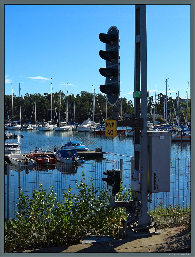 Ausfahrsignal Nyh 40 des Bahnhofs Nynäshamn, direkt am Hafen gelegen. (26.09.2021)