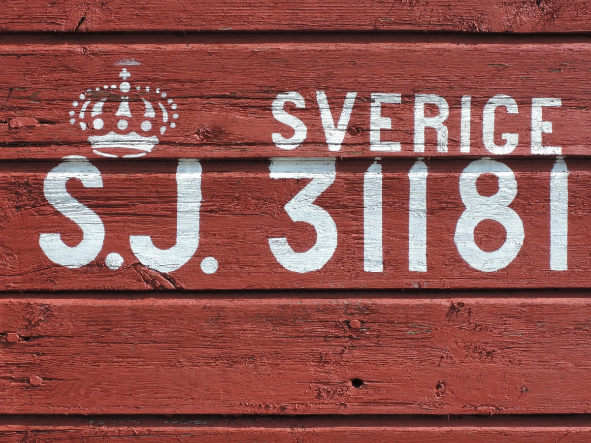 Aufschrift an einem Güterwagen der SJ, der auf dem Gelände des Museums-Bergwerks von Falun ausgestellt ist (08.07.2014).