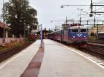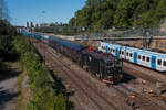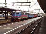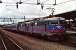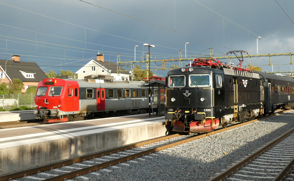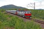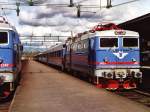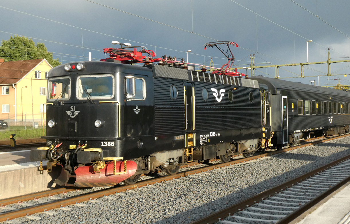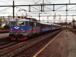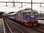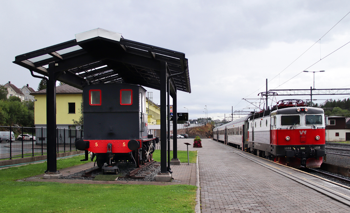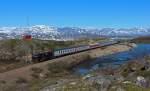 Die Sj Lok Rc6 1335 sonnt sich im Bf Narvik unter der Mitternachtssonne.Bild vom 19.7.2014