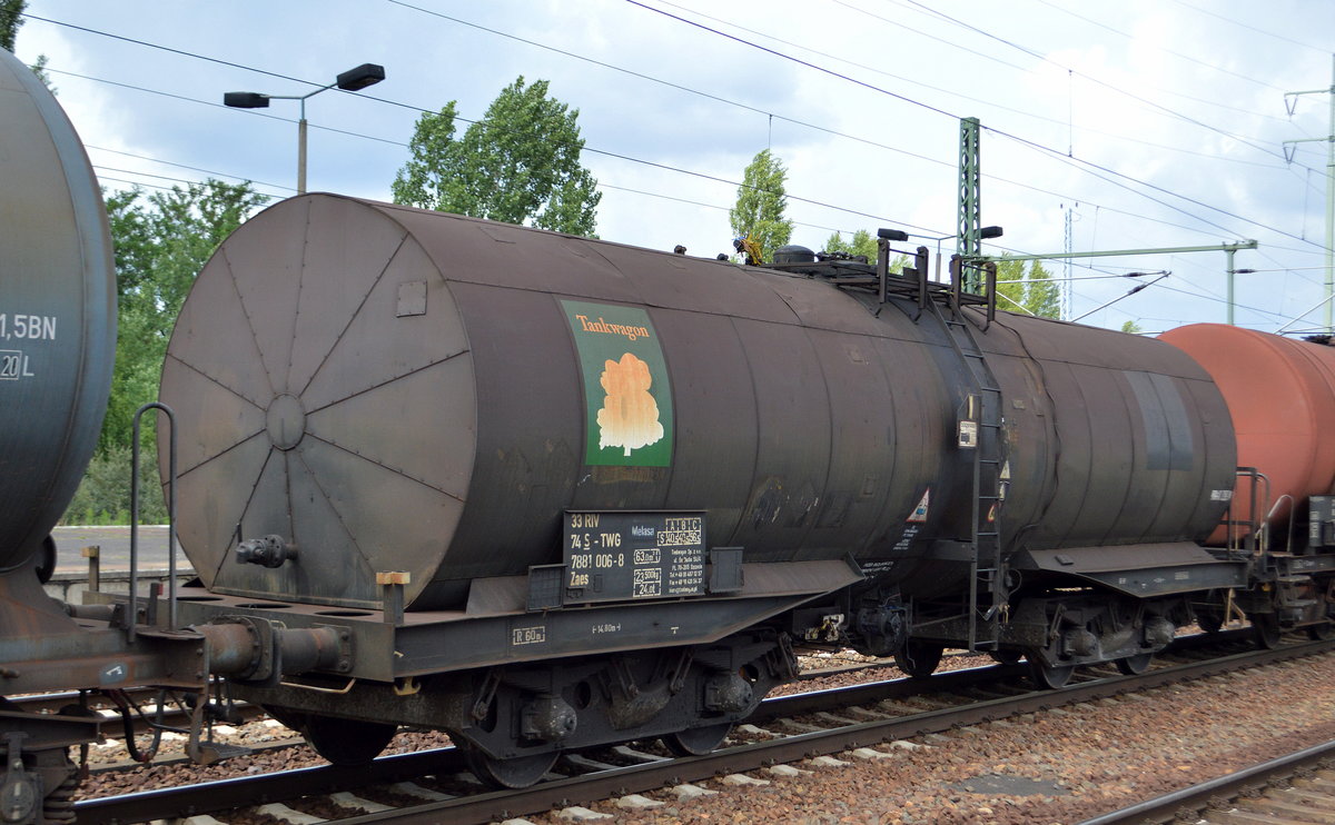 Meine Erstsichtung, ein Kesselwagen für Schweröl der polnischen Fa. Tankwagon Sp. z o.o. (siehe auch Firmenlogo) mit Zulassung in Schweden mit der Nr. 33 RIV 74 S-TWG 7881 006-8 Zaes am 25.06.18 Bf. Flughafen Berlin-Schönefeld.