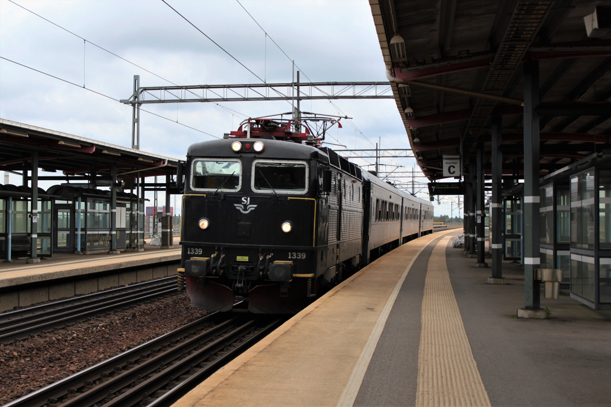 Am 10.09.2018 durchfährt ein Snabbtåg nach Stockholm den Bahnhof Södertälje Syd.