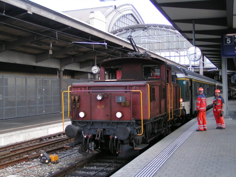 Rangierlok 1651 beim Umsetzen eines Personenzuges aus dem Bereich der SNCF in den Bahnhofsbereich der SBB in Basel. 30.07.07