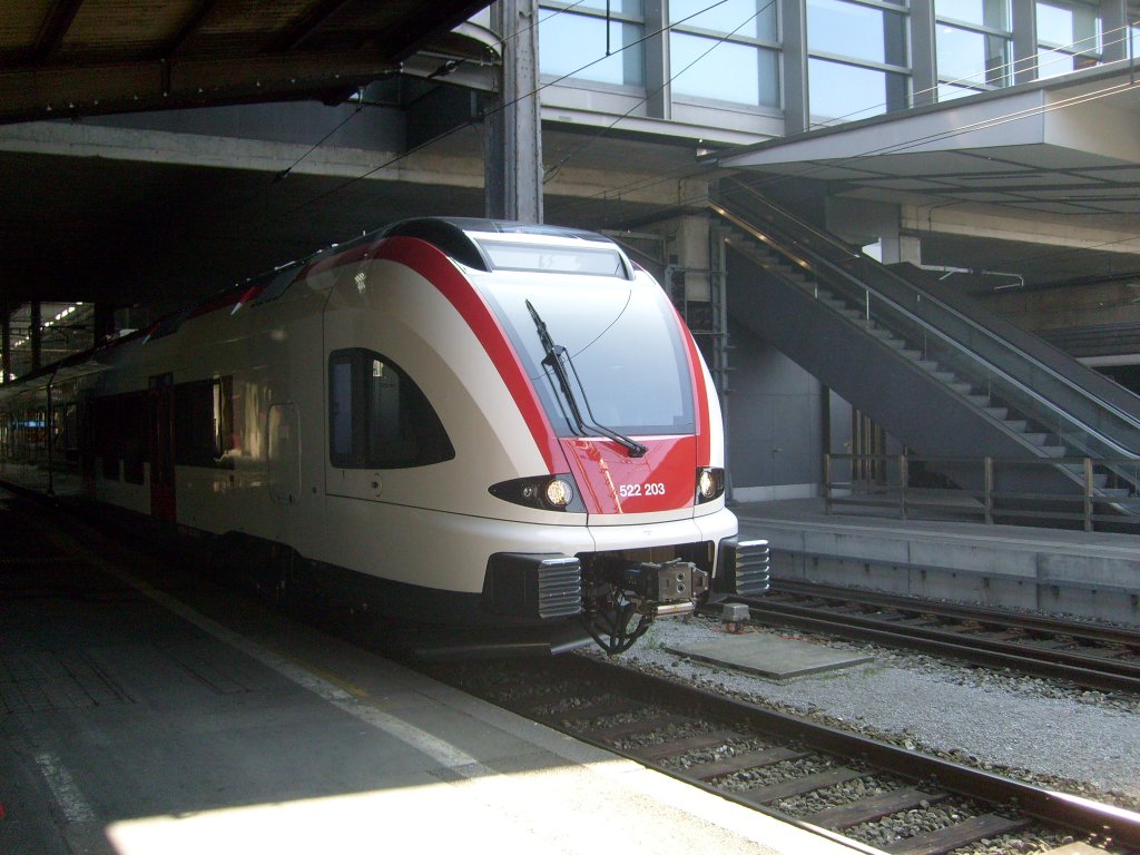 Hier steht der neue FLIRT France 522203 kurz vor seiner Präsentation am 24.3. im Bahnhof Basel SBB. Zu beachten ist die neue Kopfform.