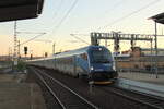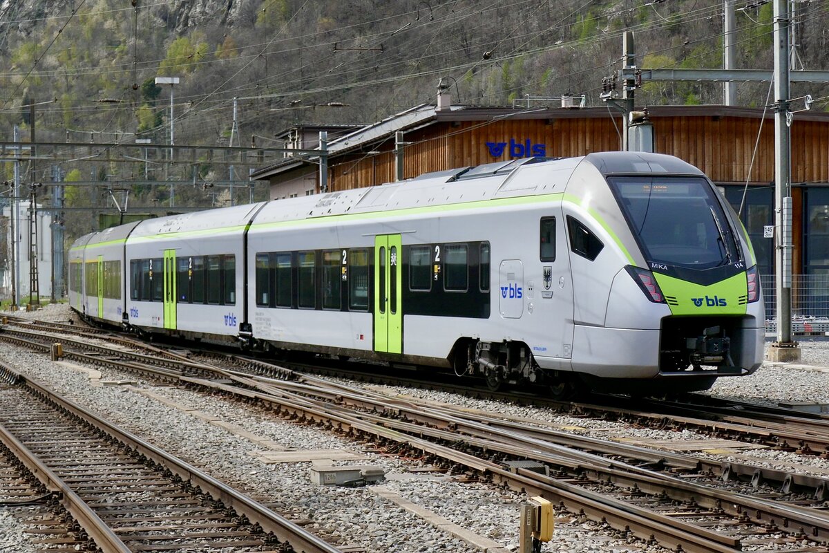 Links im Bild der einfahrende BLS RABe 535 106 "Lötschberger".