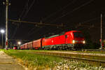 Zwischen RABDe 500 006-7 "Johanna Spyri" SBB und einem ETR 610 der Trenitalia S.p.A. (FS) rangiert E.402 114-9 (E.402B) der Trenitalia S.p.A. an die Wagen heran, um sie bis zum Endbahnhof zu befördern.