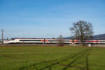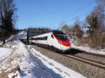 Ein SBB RABe 503 ist als EC von München nach Zürich unterwegs und konnte zwischen Lochau und Bregenz beim Einfahrvorsignal von Lochau Hörbranz fotografiert werden.