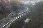 Ein SBB RABe 503 ist als EC von München nach Zürich unterwegs und konnte zwischen Lochau und Bregenz bei Kilometer 8.2 fotografiert werden. Der Zug erreicht in Kürze seinen nächsten Halt Bregenz.