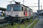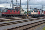 Re 420 252-9 und Re 420 294-1 mit Werbung 100 Jahre Cirkus Knie anlässlich der Bahnhofsdurchfahrt Solothurn am 30. Juli 2021.