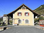 Sehr  schön zeigt sich das liebevoll restaurierte Stationsgebäude von Mülenen, auch wenn Mülenen nun eine Haltestelle ist und das Gebäude seinen eigentlichen Zweck nicht mehr erfüllen kann.