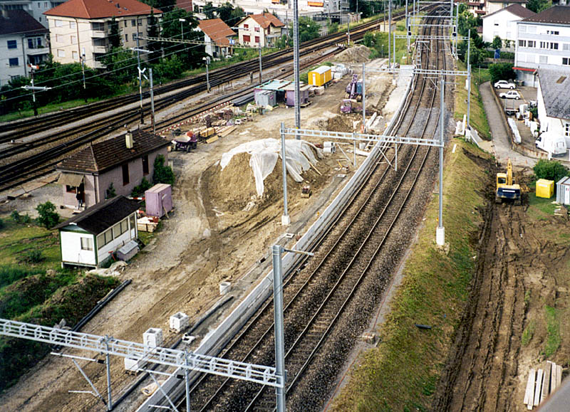 Der Bau der neuen Station Biel-Mett gleich zu Beginn. Links RB Biel Ost. Archivbild (Sylvia), Sept. 1999, Scan ab Papierbild.