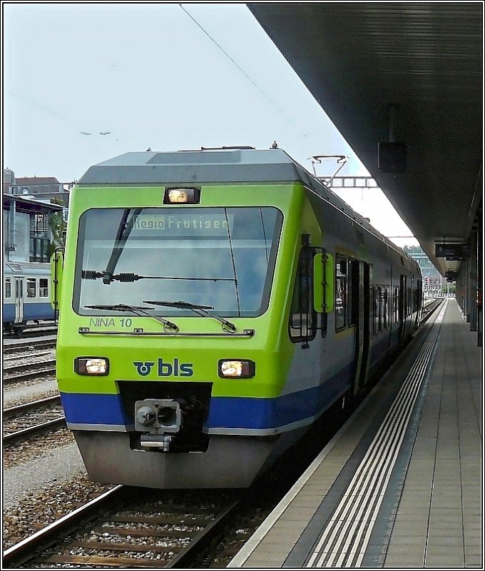 BLS Triebzug NINA 10 als Regio nach Frutigen aufgenommen am 28.07.08 im Bahnhof von Spiez.
