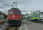 SBB Be 4/6 12320 in Spiez anlässlich der Jubiläumsverastaltung "Rail in 88", 14.08.1988 - Scan vom Dia