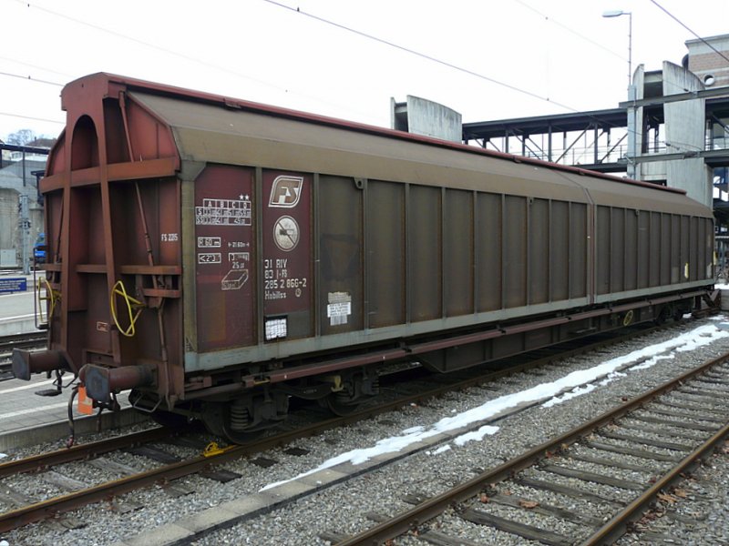 FS - Im Bahnhof Spiez abgestellter Güterwagen Typ Habillss 31 83 285 2 866-2 am 28.12.2008