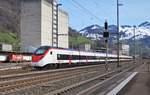 Die SBB Re 460 105 "Eule" beim Halt am 1. April 2018 mit dem IC nach Chur im Zürich HB.