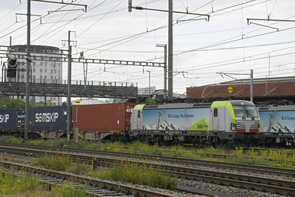 Siemens Vectron 475 411-5 der BLS durchfährt am 02.06.2025 den Bahnhof Pratteln.