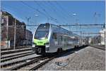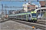 BLS - Dienstfahrt des Pendelzuges an der Spitze der Triebwagen RBDe 4/4 565 736-6 bei der durchfahrt in Gwatt am 10.05.2017