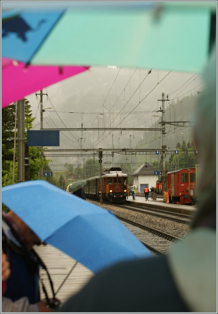 Die BLS Ae 6/8 205 in Kandersteg - oder: Damit ist das Thema "Wetter" am ersten Tag des BLS Bahnhoffestes von Frutigen eingehende bebildert...