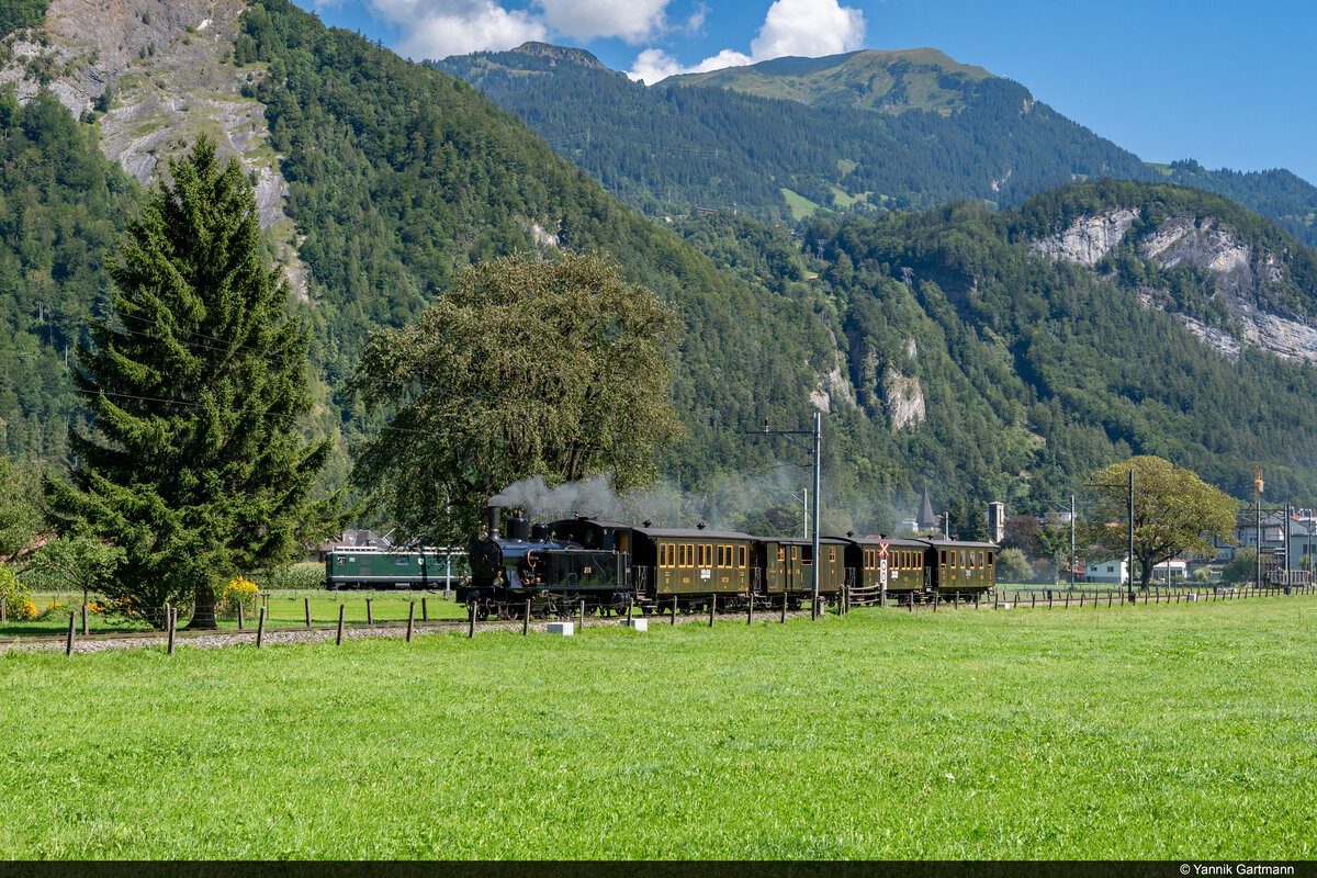 Zeitreise am Brünig 2021: G 3/4 208 und SBB HGe 4/4 I 1992 bei der Ausfahrt Meiringen