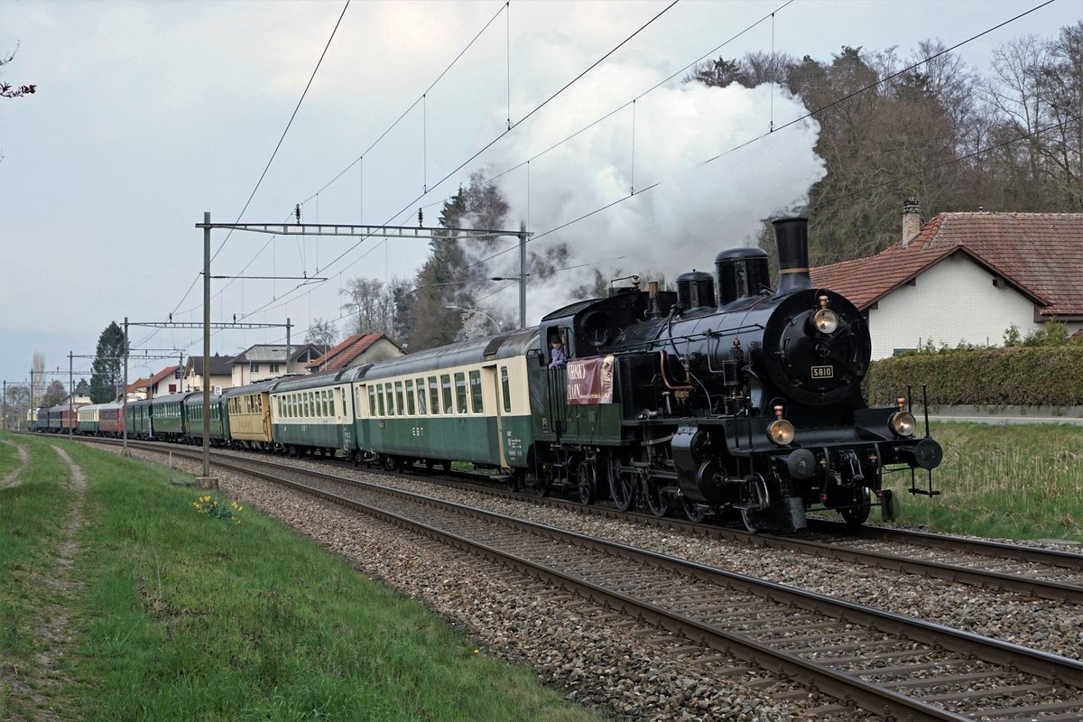Mit Volldampf bei Busswil unterwegs am 13. April 2019.