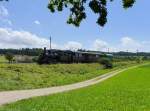 In Rückwärtsfahrt ist die Eb 3/5 der DBB am 04.10.2025 kurz vor Rohrbach unterwegs zu den Huttwiler Dampftagen.