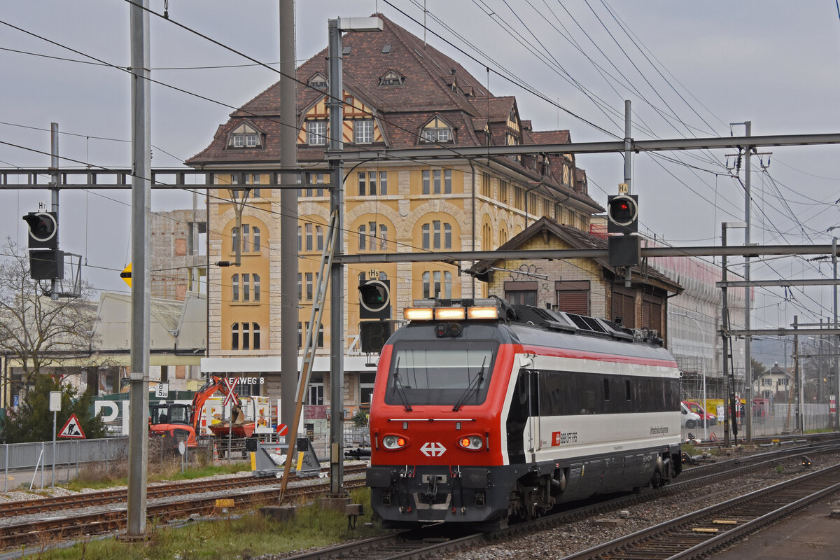 Der Ablaufberg des Rangierbahnhofs Limmattal ist von der Brücke Sandäckerstrasse aus gut einzusehen. Ich war am 8. April 2015 vor Ort und hatte das Glück, gleich noch das Infrastrukturdiagnosefahrzeug XTmass anzutreffen, welches das ganze Gleisnetz alle 6 Monate abfährt. Das Fahrzeug wird von zwei Dieselmotoren angetrieben, der Pantograph dient nur zu Fahrleitungsmessungzwecken. Rechts davon schiebt eine Am 6/6 gerade eine Reihe von Güterwagen über den Ablaufberg während im Hintergrund gerade die Re 6/6 11626, zu erkennen am "Schnauz", mit einem weiteren Güterzug in der Einfahrgruppe eingetroffen ist.