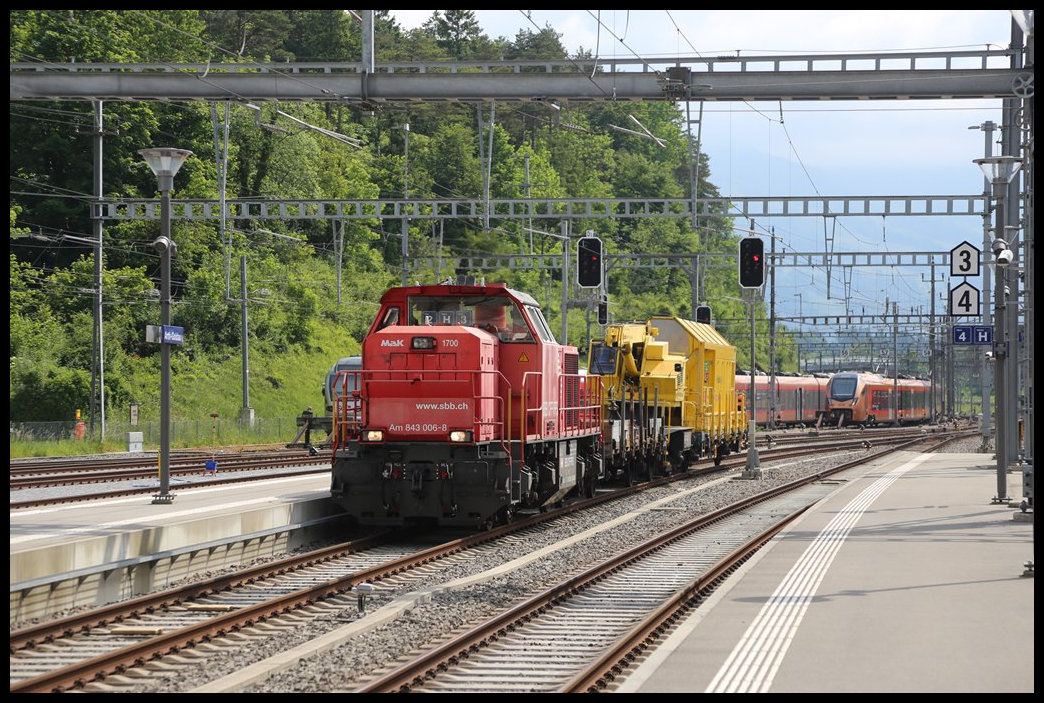 RHOMBERG / Sersa - Lok "BETTINA" 92 85 8 843 154-6 in Aarberg währen der Zückerrüben Zeit für anfallende Rangierarbeiten im Bhf. Aarberg und Areal der Zuckerfabrik in Aarberg ... Bild vom 15.10.2023