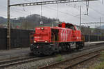 Am 843 022-5 steht am 20.02.2026 auf einem Nebengleis beim Bahnhof Pratteln.