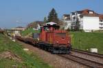 Em 3/3 18825 steht auf einem Nebengleis beim Bahnhof Kaiseraugst.