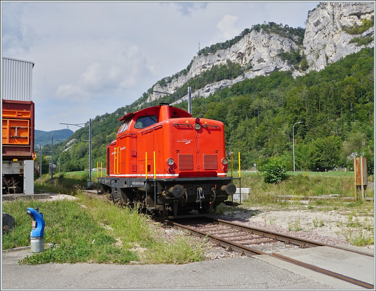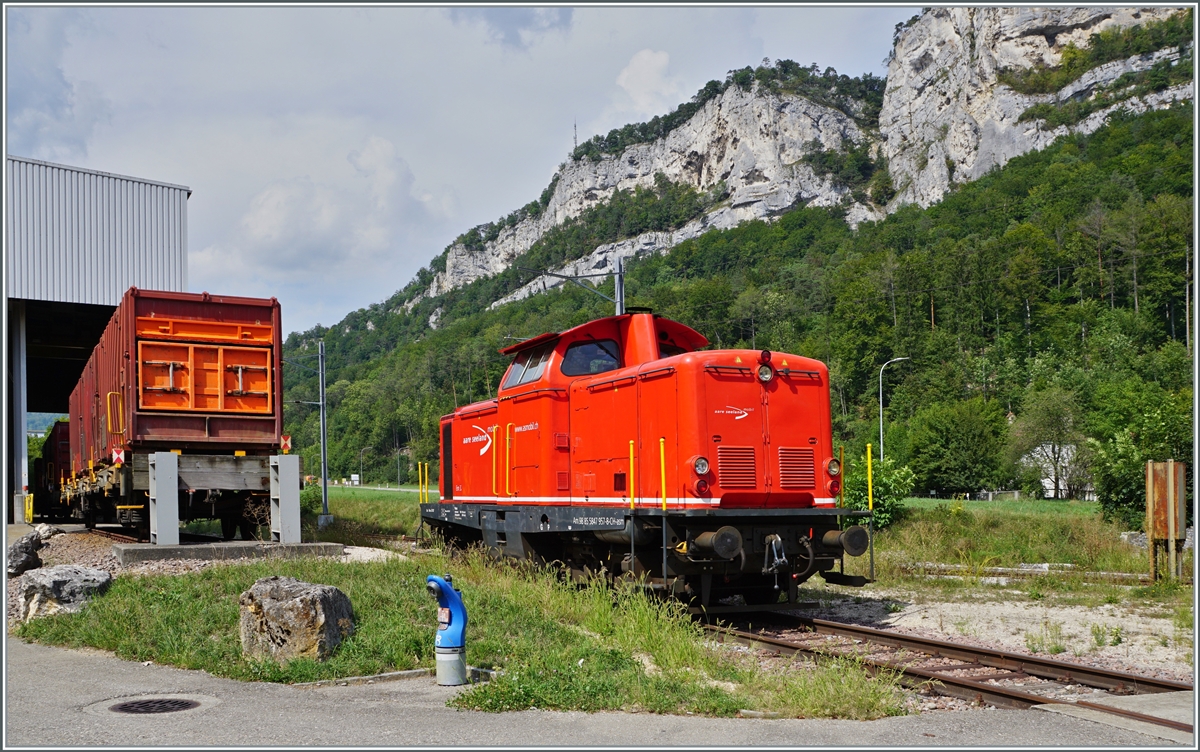 ASm am 2. August 2019. Em 3/3 326 mit der zweiten Hälfte des leeren Kesselwagenzugs bei der Einfahrt den Bahnhof Niederbipp. Hier gut zu sehen die Einmündung der Strecke aus Langenthal ins Dreischienengleis aus Oberbipp.