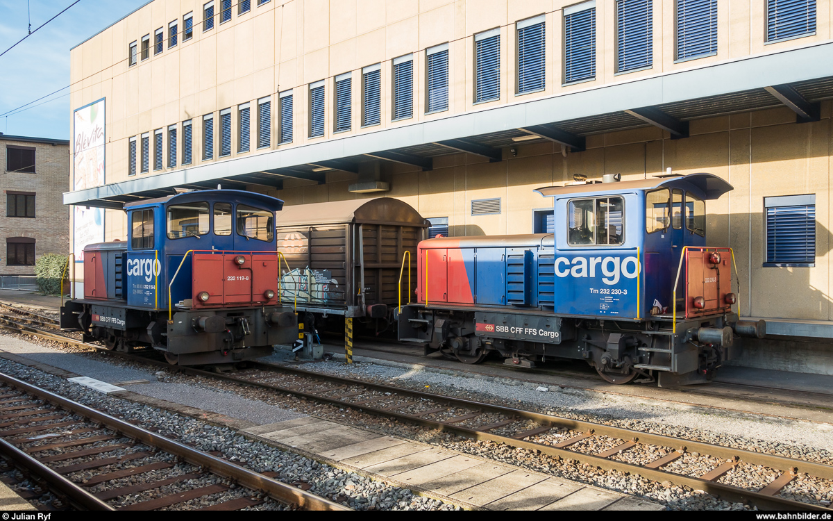 SBB Cargo Tm 232 230 und Tm 232 119 am 8. Februar 2020 in Meilen.