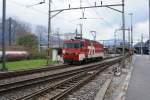 Ein TPC BVB BDeh 4/4 und eine der beiden HGe 4/4 warten in Villars sur Ollon auf den nächsten Einsatz und zeigen sich noch beide in der BVB Farbgebung. 5. März 2019