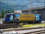 Ein TPC BVB BDeh 4/4 und eine der beiden HGe 4/4 warten in Villars sur Ollon auf den nächsten Einsatz und zeigen sich noch beide in der BVB Farbgebung.