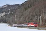 Die HGe 4/4 II 101 965-2 "Lungern", A 215-7, B 321-0, B 320-2 und ABt 941-0 erreichen Meiringen am 24. Januar 2010 als IR 2222 Luzern - Interlaken Ost. Diese Komposition dient zur Erprobung der zukünftigen Pendel auf der Engelberger-Linie.